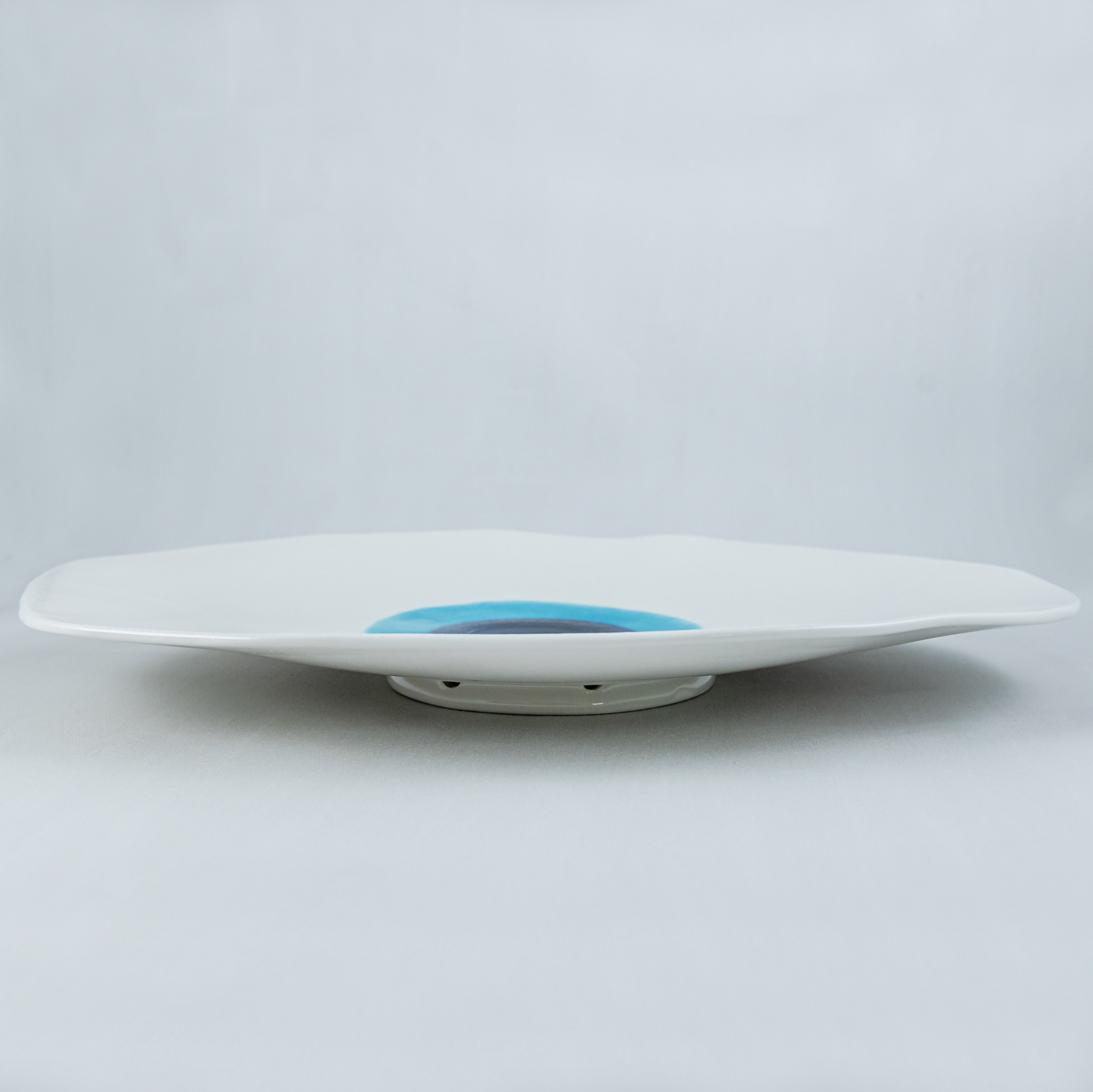 Handmade ceramic platter, coloured with a combination of white,turquoise and blue fine glazes.Ideal choice for everyday use, as well as for decorative purposes.A large variety of sizes, designs and colours offers a lot of options to the creation of your own wall/table plates set.