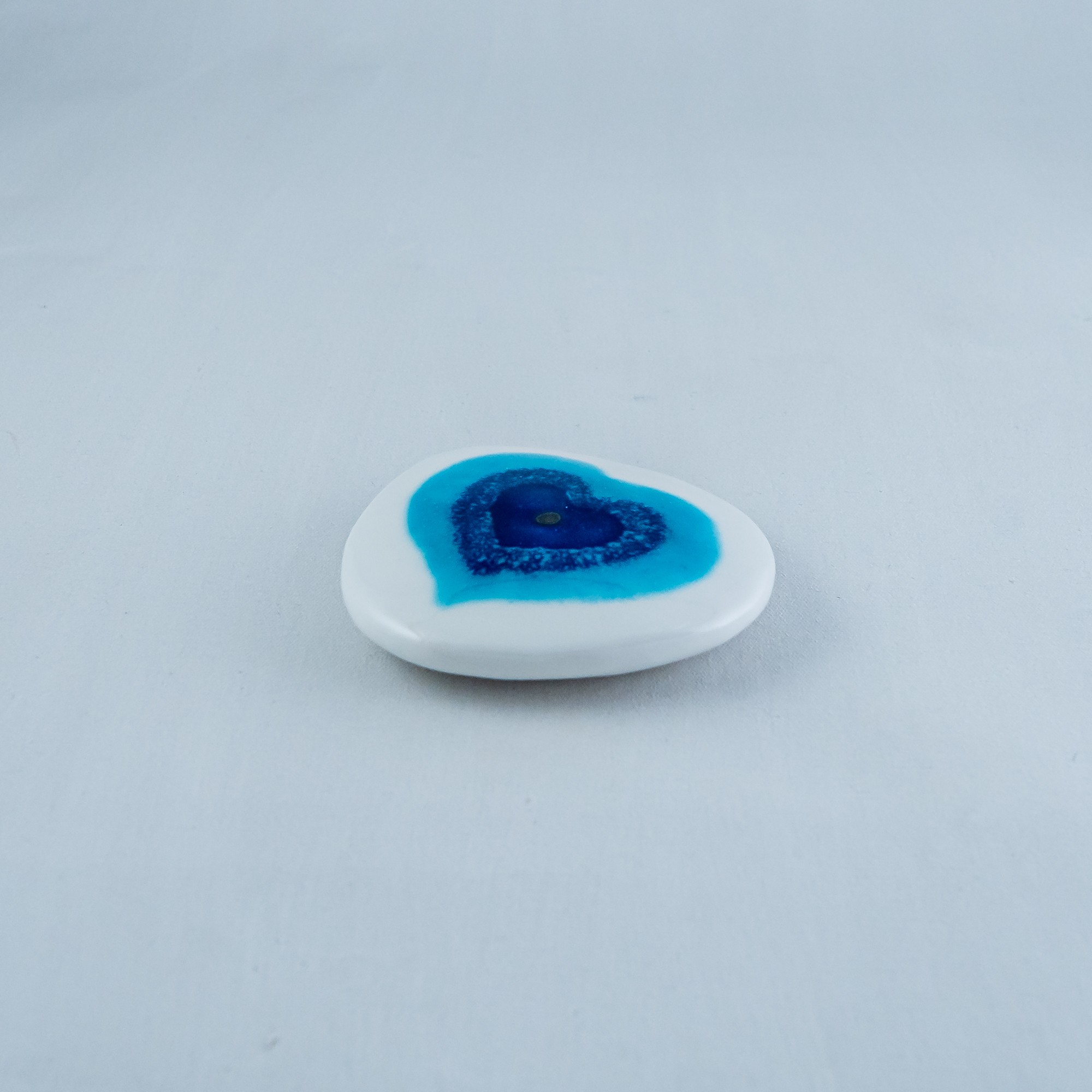 Handmade ceramic pebble,coloured with a combination of turquoise,white and blue fine glazes.Ideal choice for decorative purposes.Each piece is truly unique,as it is shaped and painted exclusively by hand. A large variety of colour combinations,sizes and designs offers multiple options for the decoration of every space you wish.