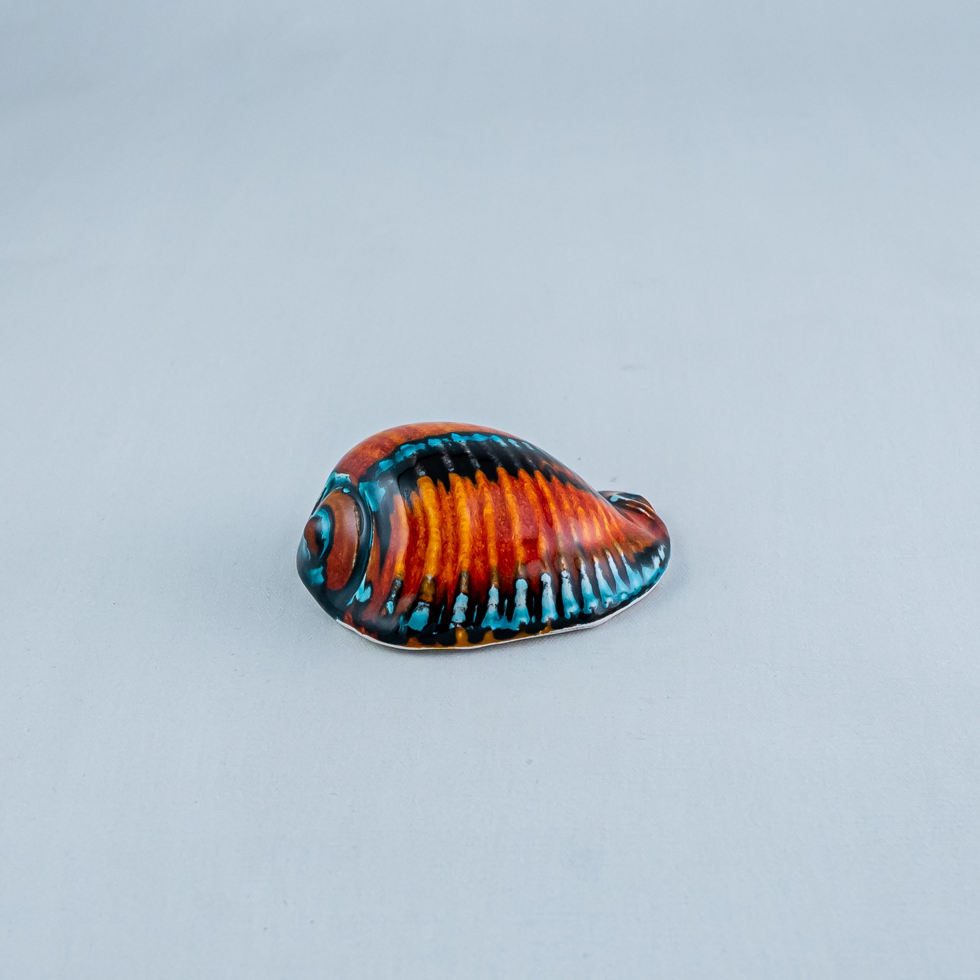 Handmade ceramic nautilus,coloured with a combination of orange,red and green fine glazes.Perfect choice for table decoration.