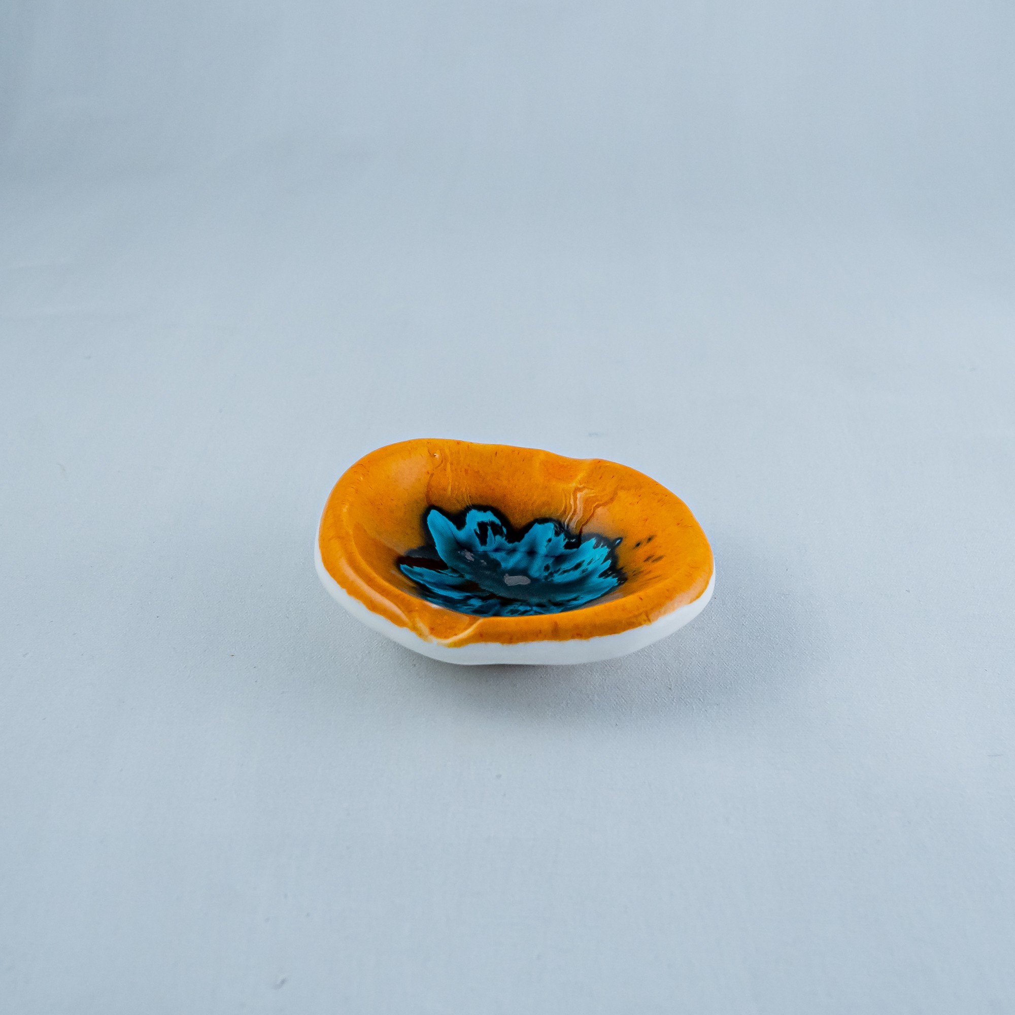 Handmade ceramic ashtray,coloured with a combination of orange and green fine glazes.Ideal choice for everyday use,as well as for decorative purposes.Each piece is truly unique,as it is shaped and painted exclusively by hand.Perfect choice for a special gift.