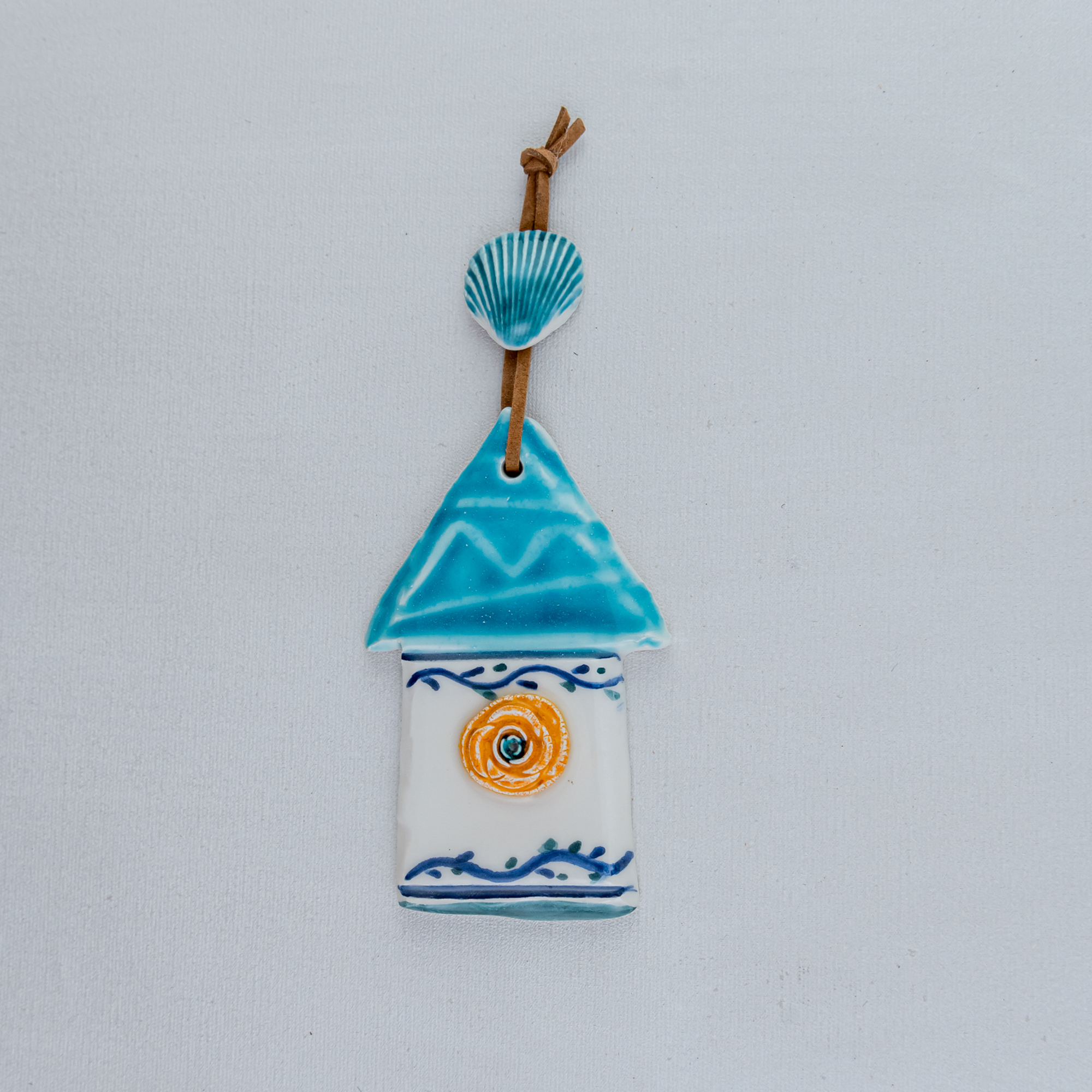 Handmade ceramic house,coloured with a combination of turquoise,orange and white fine glazes.Perfect choice for wall or table decoration.