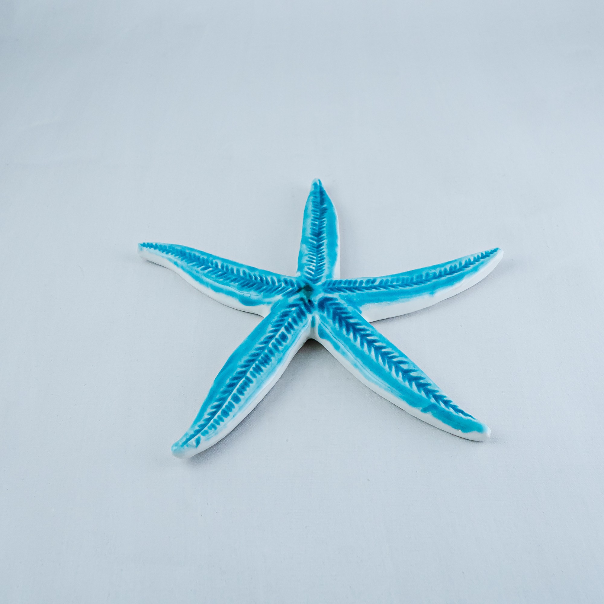 Handmade ceramic starfish,coloured with a combination of turquoise fine glazes.Perfect choice for wall or table decoration.